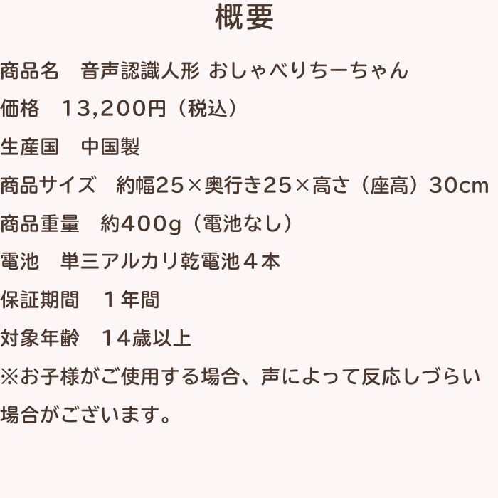 おしゃべりちーちゃんは事前設定不要のかんたん操作!------------------------------------------